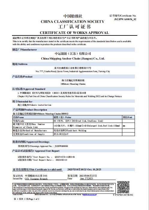 率先開發M4級錨鏈、 R7/R8級系泊鏈,打造完整而先進的產品體系。